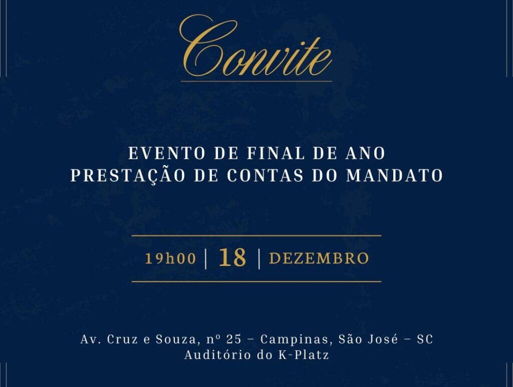 A programação inclui a apresentação da prestação de contas anual do mandato, com os principais resultados, entregas e projetos realizados em 2025. Também serão anunciados os vencedores do prêmio SC que faz a Diferença, iniciativa que destaca catarinenses que transformam realidades nas áreas de educação, empreendedorismo, voluntariado, esporte e segurança pública.